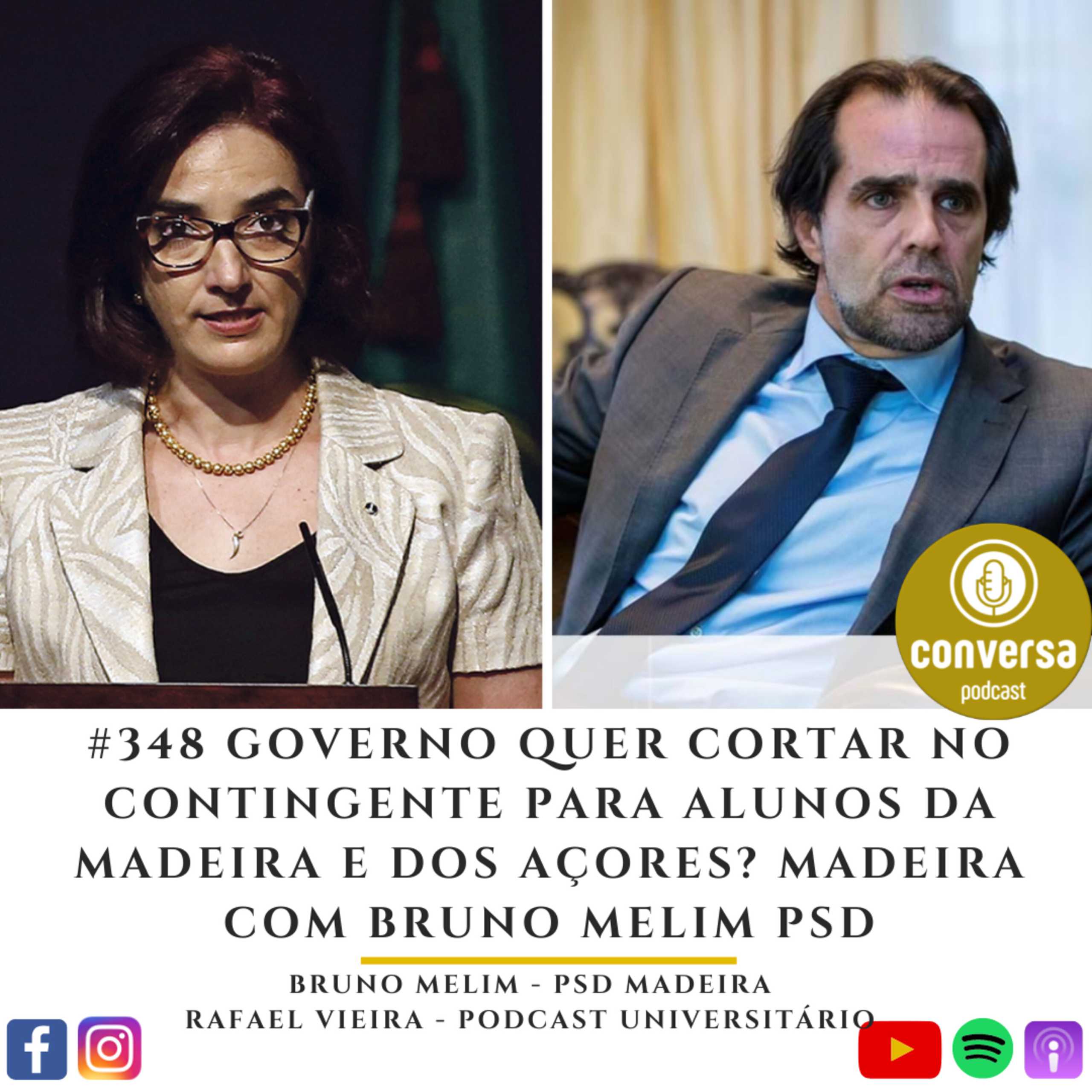 Governo quer cortar no contingente de acesso ao ensino superior para alunos da Madeira e dos Açores? Episódio com Bruno Melim, deputado do PSD Madeira na Assembleia Legislativa da Madeira e @vieirarafael8 do Podcast Universitário. O jornal Público avançou que o Ministério de Elvira Fortunato quer cortar na percentagem do contigente dos alunos da Madeira e dos Açores e o pânico instalou-se, sendo que o gabinete da Ministra Elvira Fortunato enviou uma nota a negar tal entrevista dada ao jornal Público. Se tal é verdade ou mentira, pouco importa, certo é que essa vontade vem sendo manifestada. Por isso os contributos do Rafael Vieira e do Bruno Melim serem tão importantes para esta análise, num tempo em que a Educação passa um tempo conturbado em Portugal. Análise essa conduzida pelo Cláudio Fonseca, do teu Podcast Conversa, o maior podcast de política em Portugal.